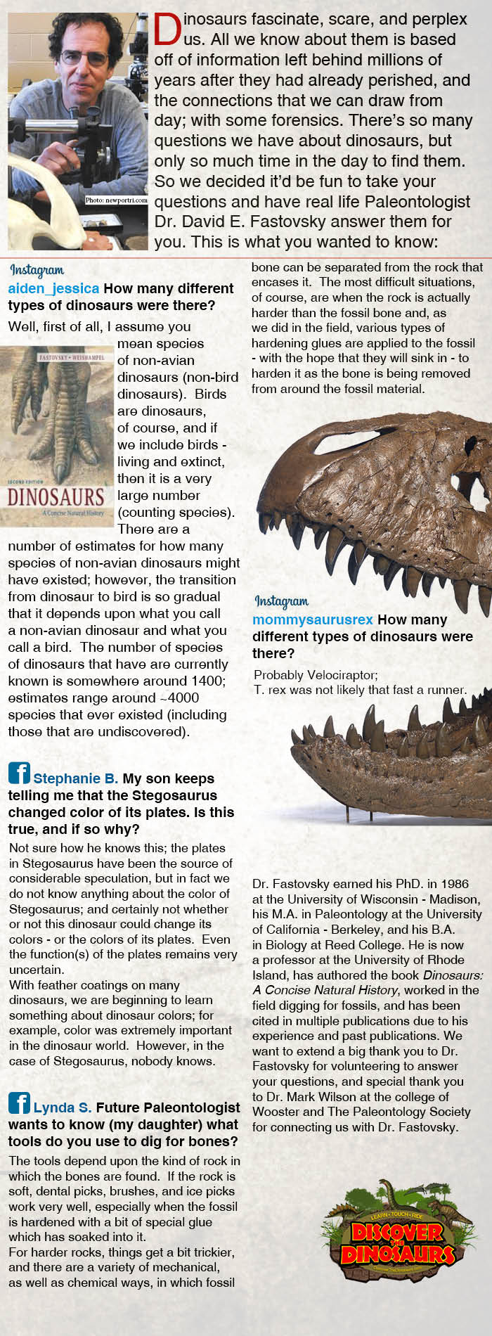I came up with the idea to have fans of Discover the Dinosaurs pose questions about dinosaurs to a real life Paleontologist, Dr. Fastovsky. This was not only to help with creating a solid and organic form of engagement, but it also provided me with a simplified form of creating content to then disperse back to our audience for more reach and impressions. Once the answers came back from our guest Paleontologist, I created a two column document based more for mobile phone use, as this was the largest used platform.The biggest challenge was finding a Paleontologist, but after much research I had found an organization dedicated strictly to education and helping to represent Paleontologists around the nation and various parts of the world. With off-site communication, I was directed to Dr. Fastovsky, and had created a plan and timeline with him on when I’d have the questions for him to answer, and when we wanted to receive them to begin creating the post.